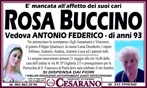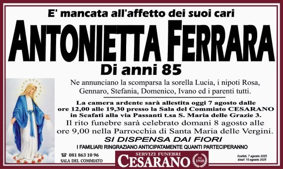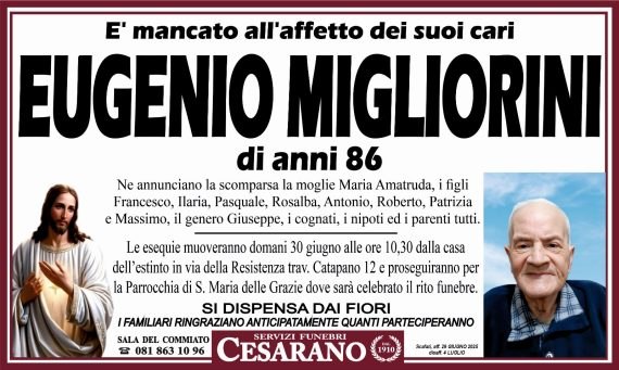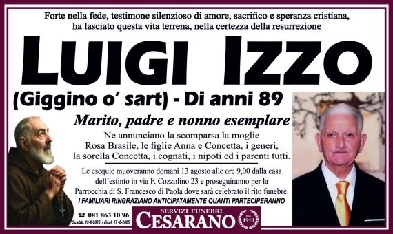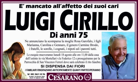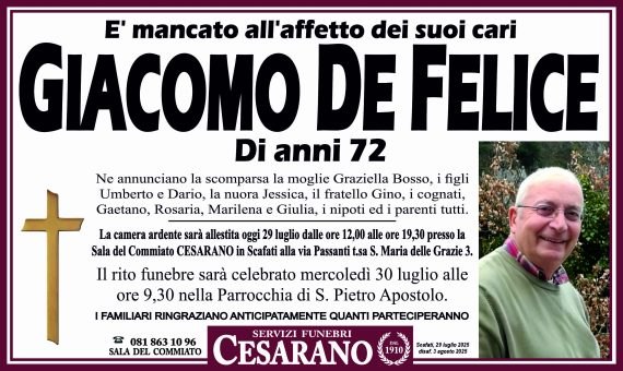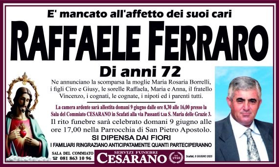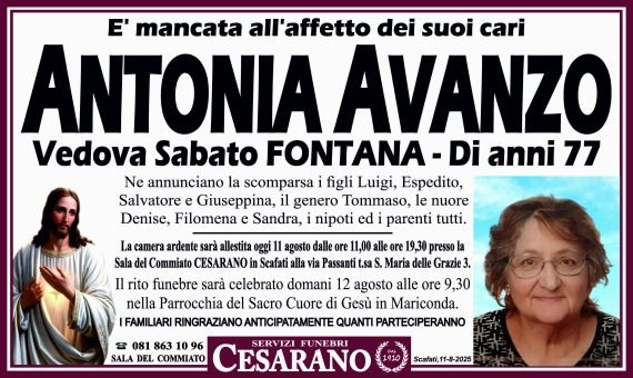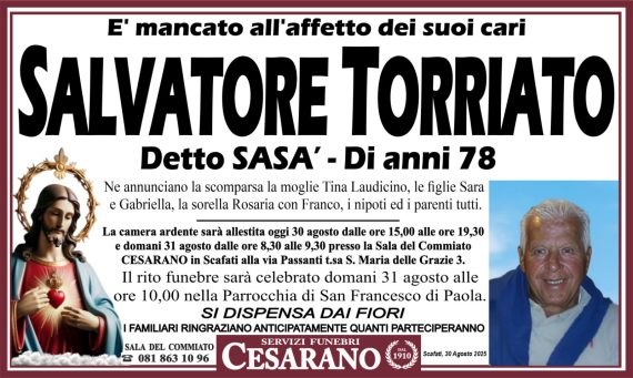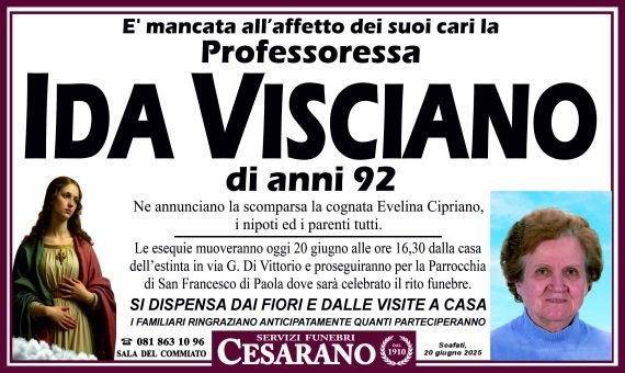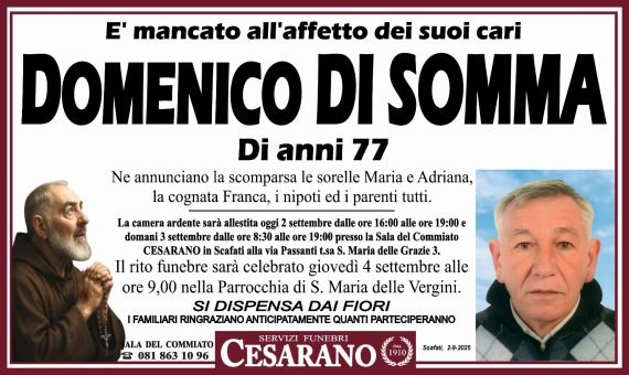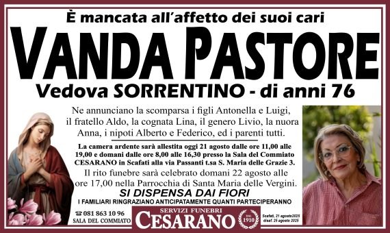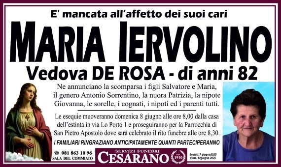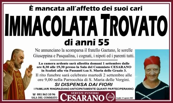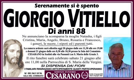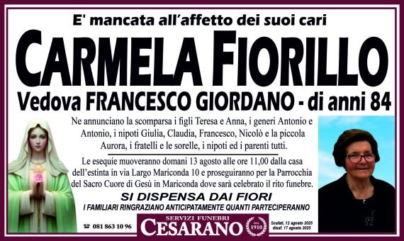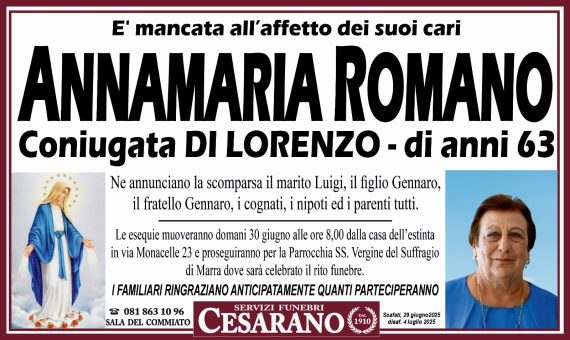 Giorno del rito funebre: 17/06/2025 Luogo il cui si trova la salma: Sala del Commiato Cesarano in via passanti tr.sa Santa Maria delle Grazie 3