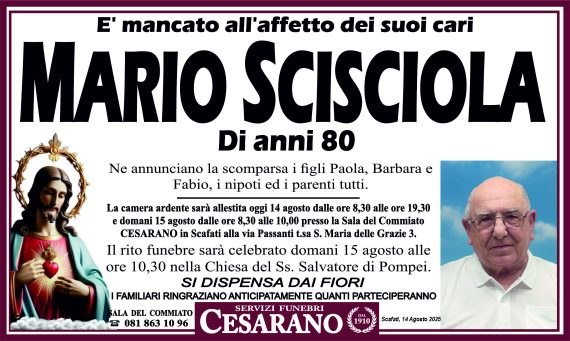 Giorno del rito funebre: 12/08/2025 Luogo il cui si trova la salma: Sala del Commiato Cesarano in via passanti tr.sa Santa Maria delle Grazie 3 […]