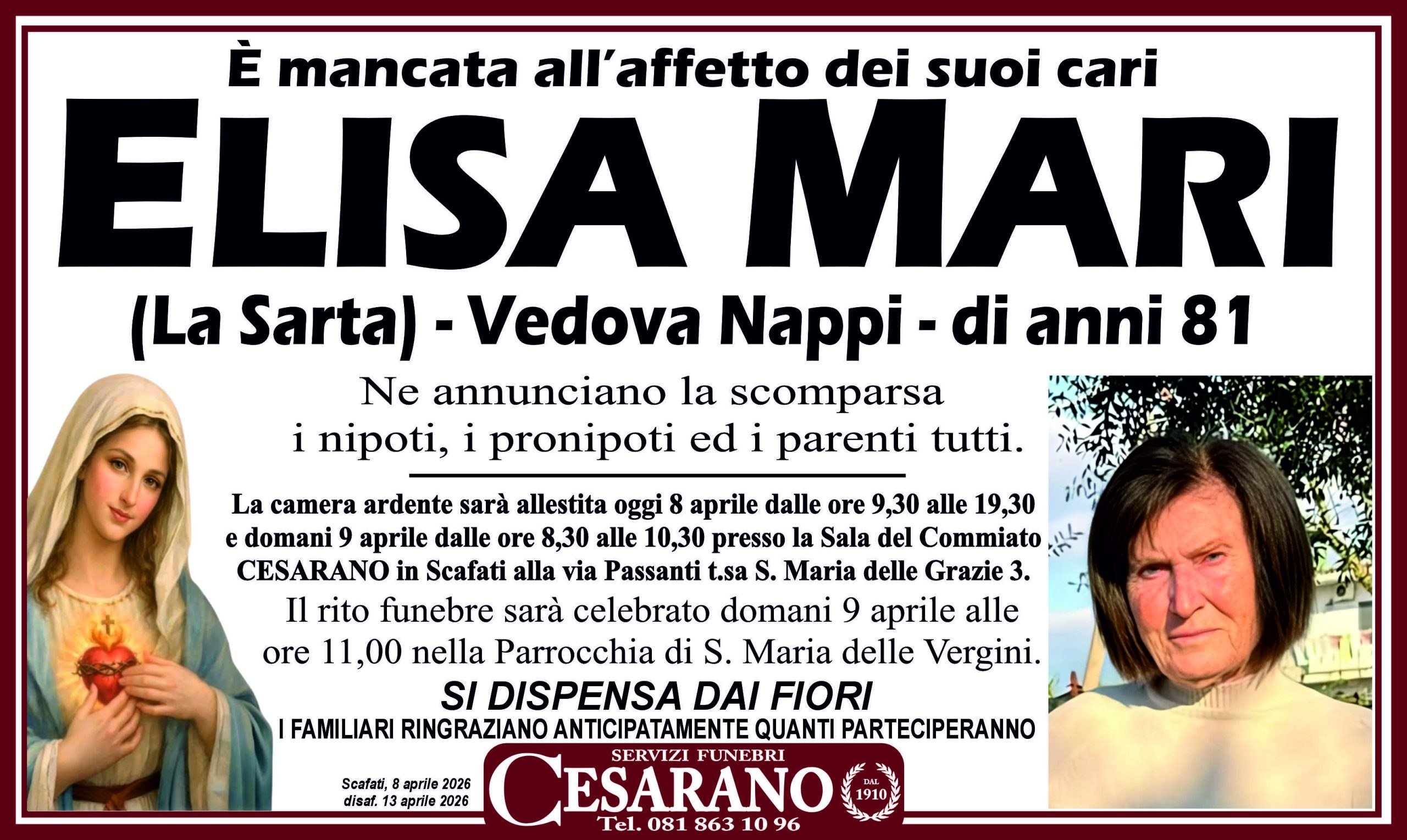 • Sala del Commiato Cesarano in via passanti tr.sa Santa Maria delle Grazie 3